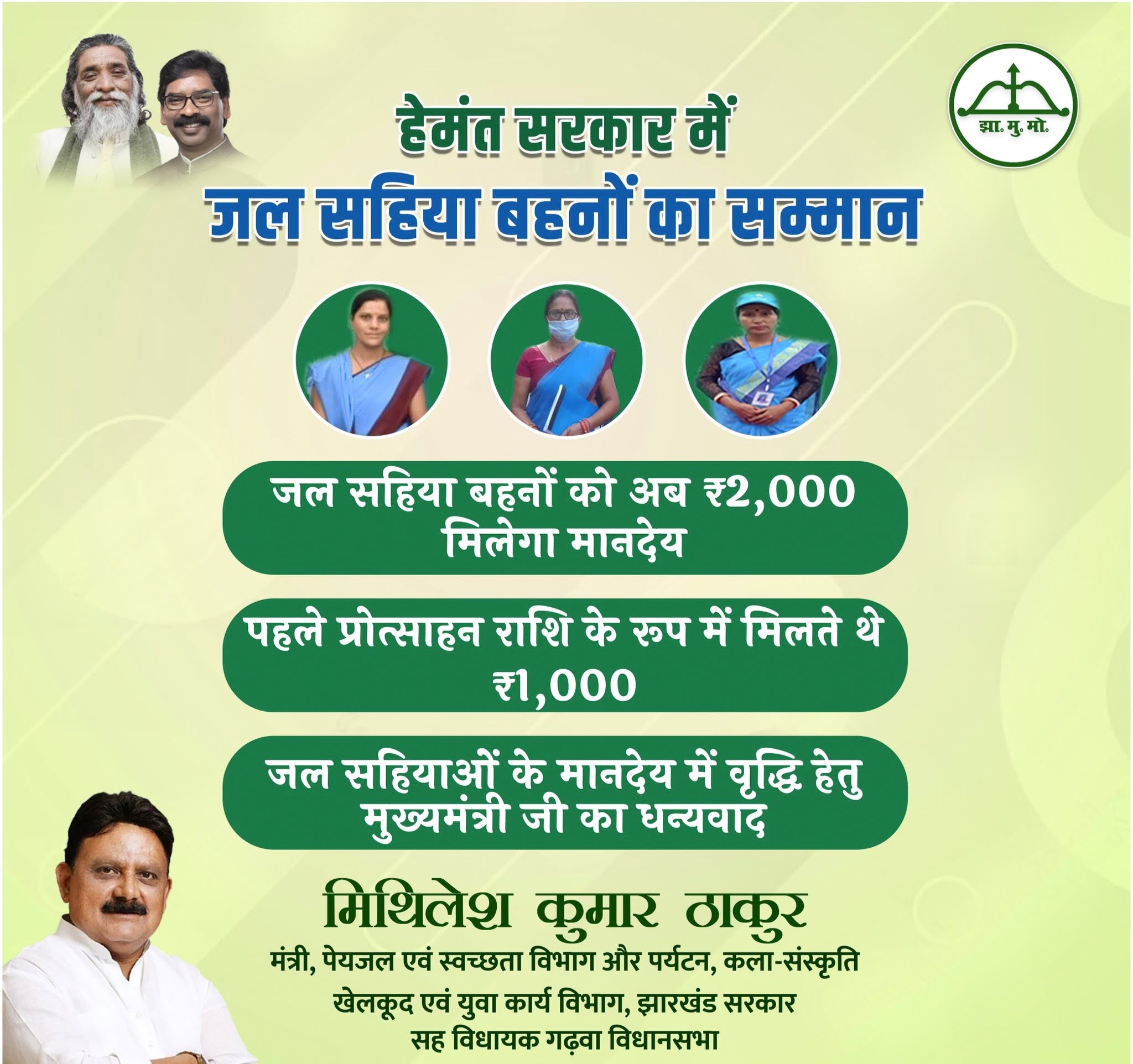 झारखंड सरकार ने जल सहिया बहनों के मानदेय में वृद्धि की रांची, 7 सितंबर 2024 – ...